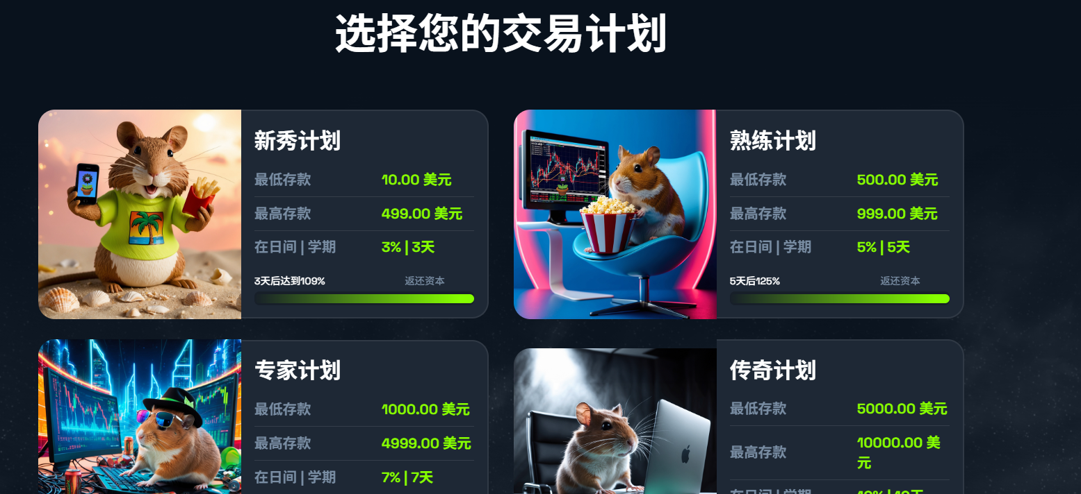 提供灵活的短期交易计划,保证用户每天获得 3% 至 10% 的收益,具体取决于他们的投资水平。我们的平台确保透明度、去中心化和最高标准的安全性,为寻求避免欺诈、欺诈和交易失败损失的用户提供避风港。